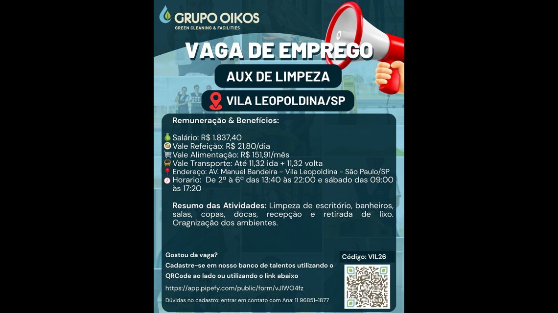 Código da vaga: VIL26