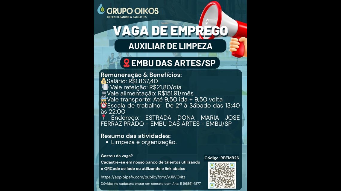 Auxiliar de Limpeza - Embu das Artes/SP - Limpeza