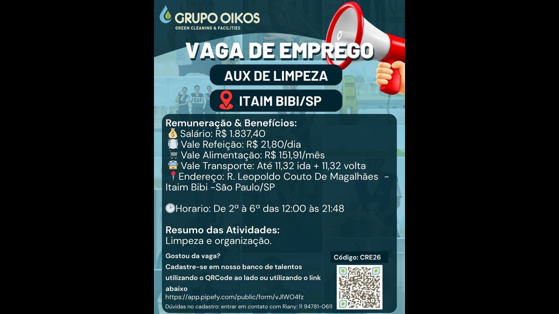 - 4 vagas: De 2ª à 6ª das 06:00 às 15:48