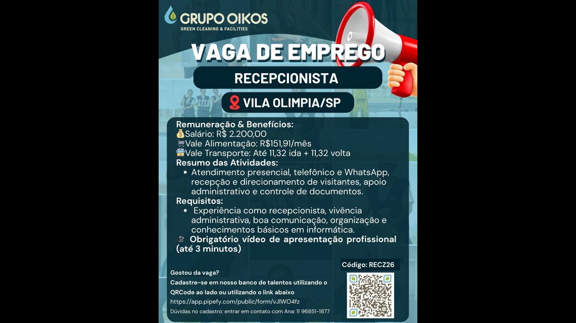 Olá, somos o Grupo Oikos, uma empresa especializada na terceirização de serviços de facilities, e adoraríamos te ter conosco!