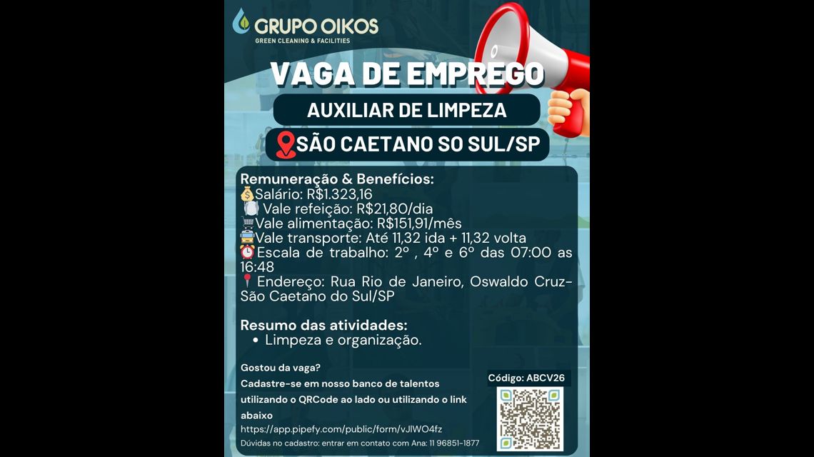 Auxiliar de Limpeza - São Caetano do Sul /SP - Limpeza