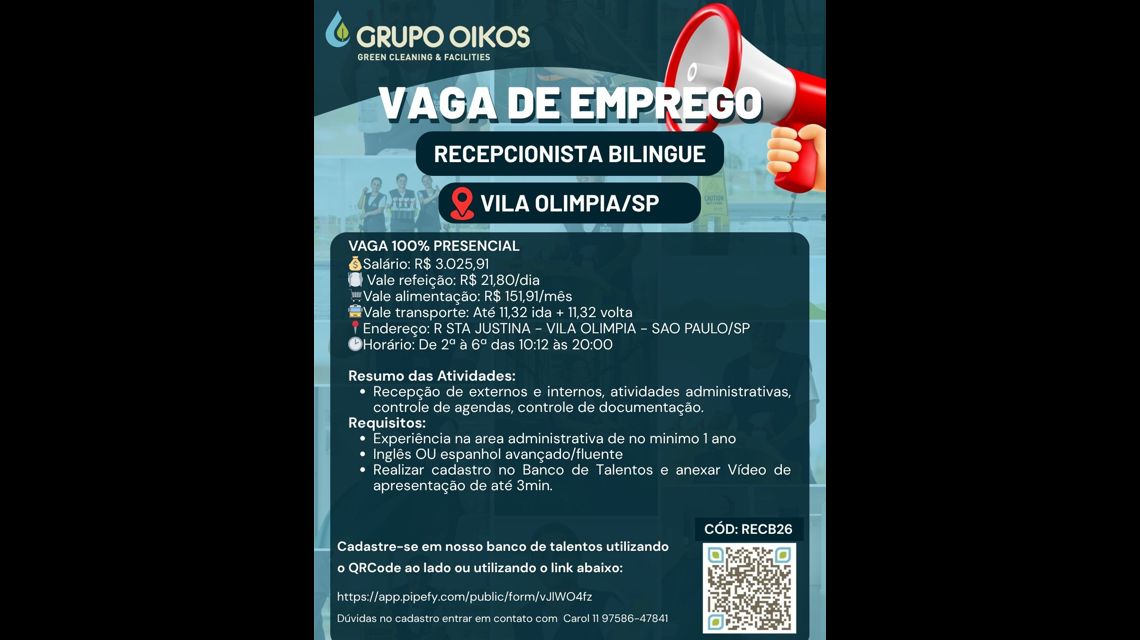 Olá, somos o Grupo Oikos, uma empresa especializada na terceirização de serviços de facilities, e adoraríamos te ter conosco!